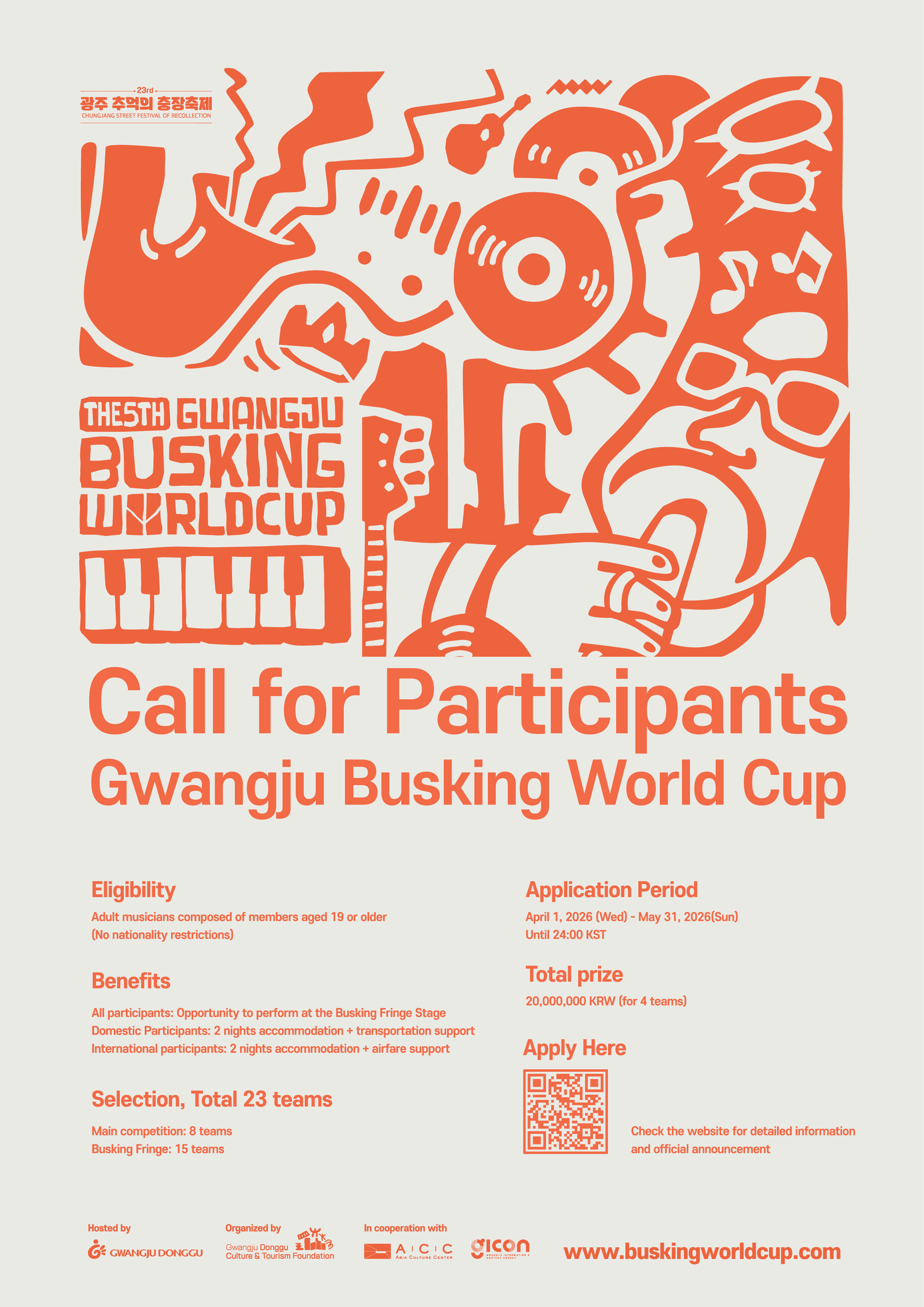 • 필수조건 : 반드시 라이브(Live) 영상이어야 하며, 유튜브에 영상을 올릴 때 #GwangjuBuskingWorldCup 해시태그 작성